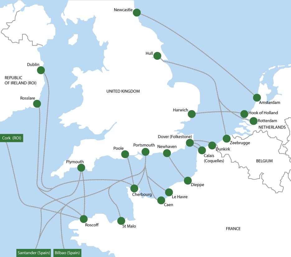 Ferry trasy do Holandska mapě
